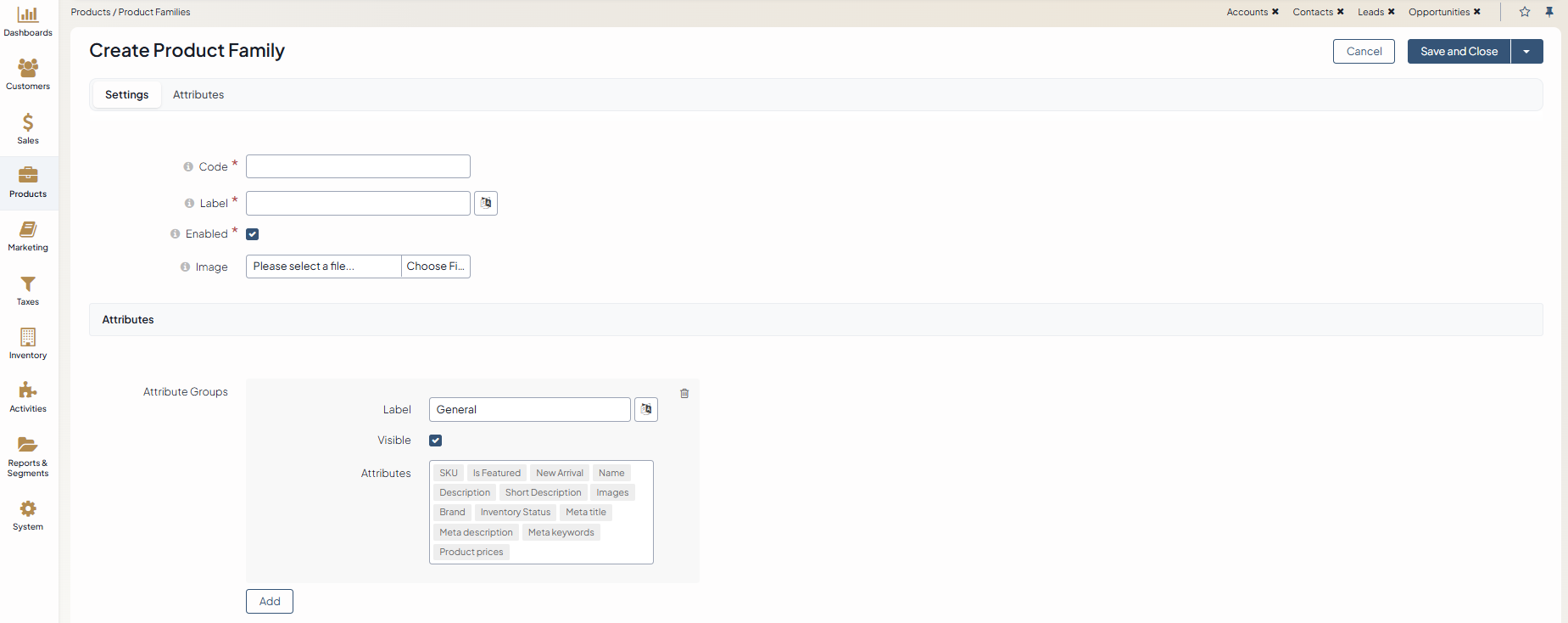 Image – Add an image to the product family, if necessary.