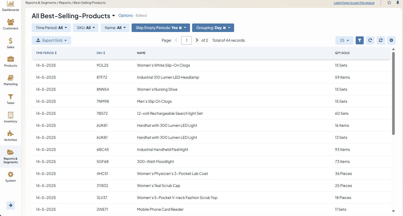 Navigate to Report & Segments > Reports > Best Selling Products.