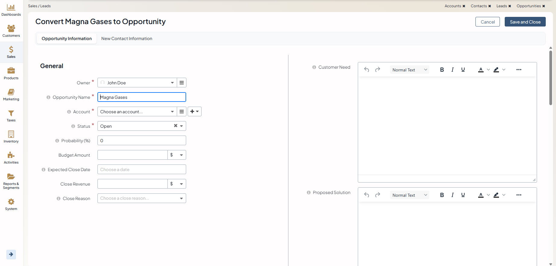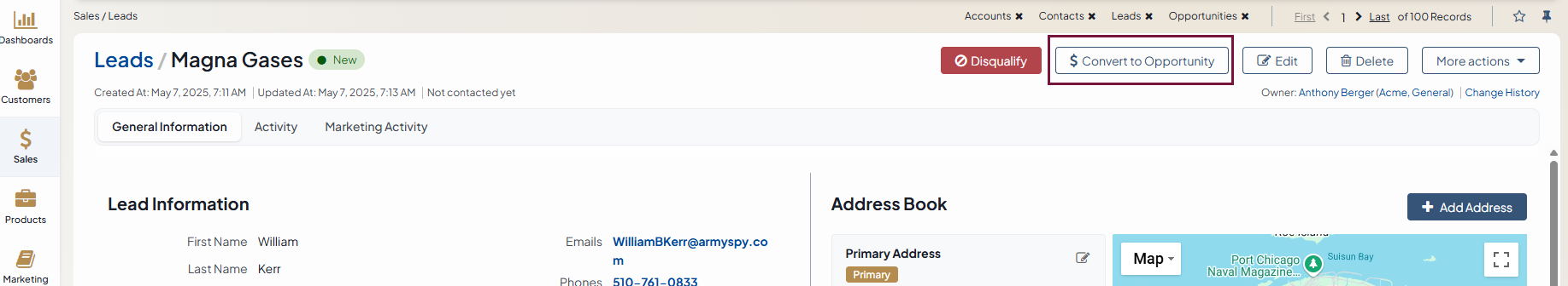 As soon as a lead is ready to be qualified, you can convert it into an opportunity: