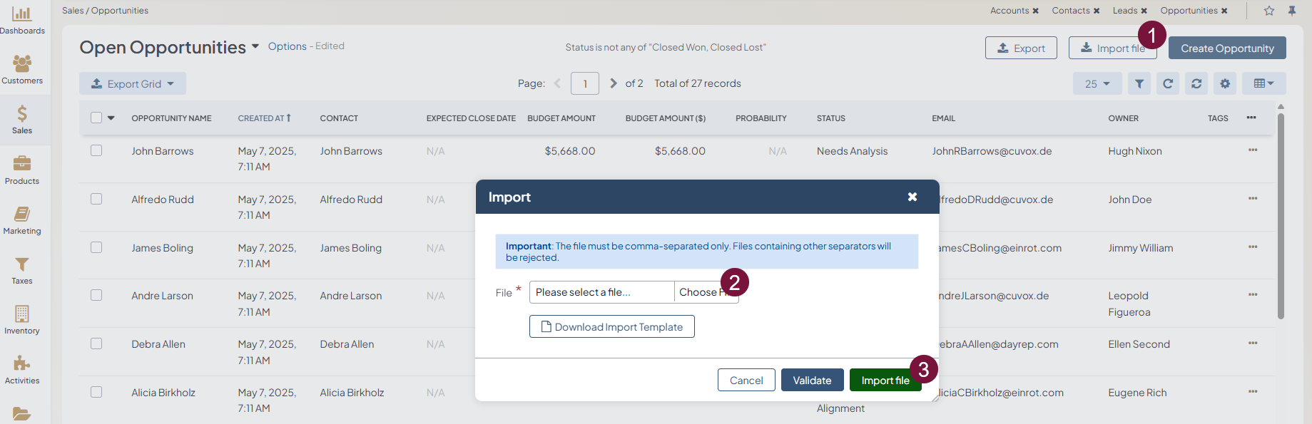 Example of opportunity bulk import template