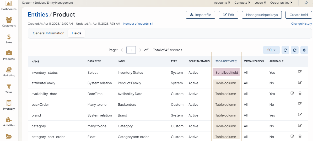 Relations (for example, product.owner, product.organization, product.primaryUnitPrecision, product.category, and any virtual relations created in OroCommerce for entities of product and its children.