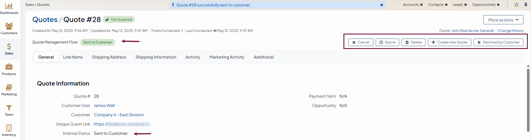 For more detailed information, please check the Quote Management Flow to learn additional details on the steps and actions available at every step.
