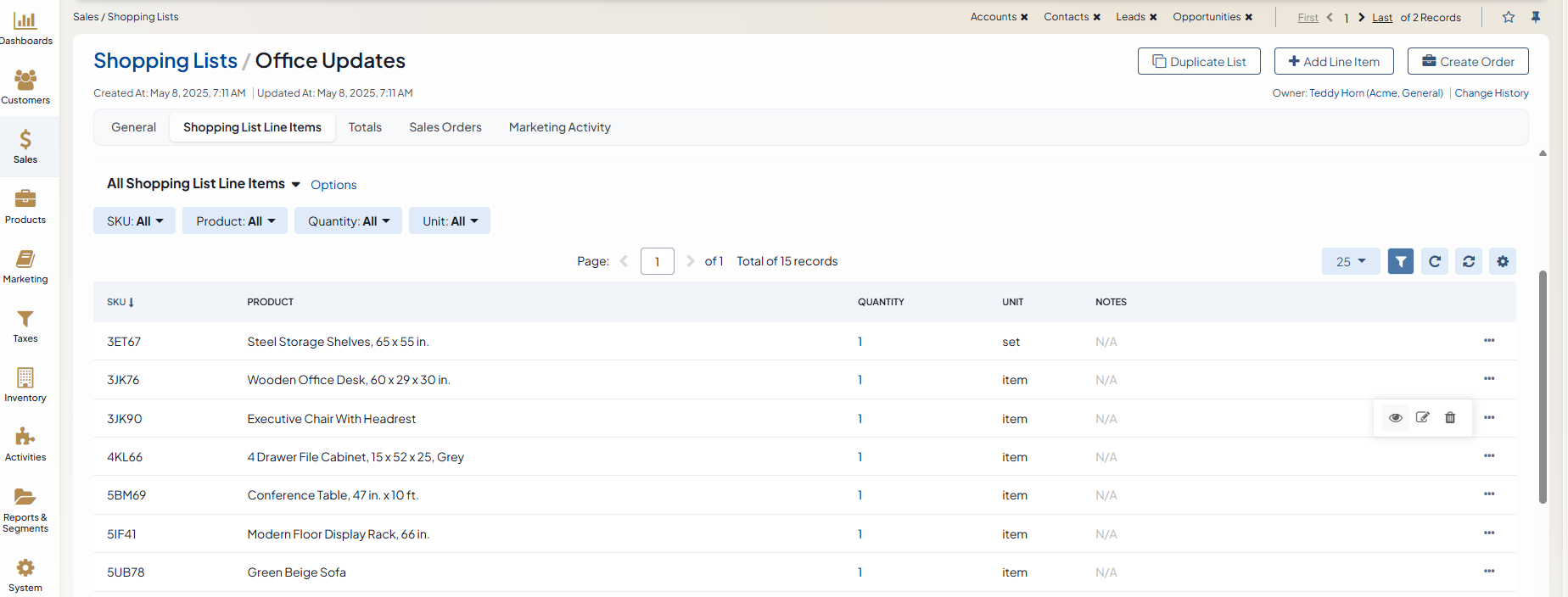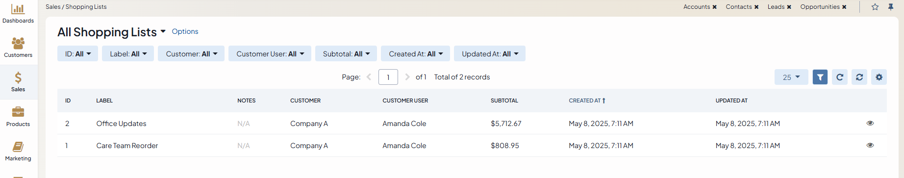 Via the back-office, you can access any shopping list created and saved by the customers in the OroCommerce storefront.