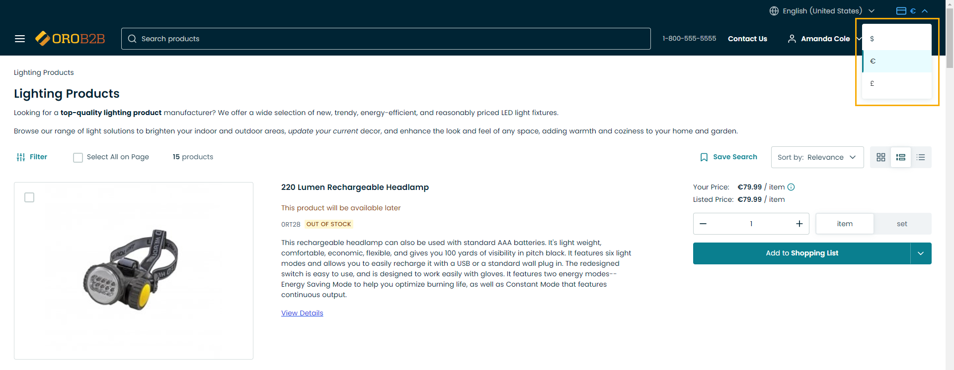 Using Minimal Price strategy — From the default or customized set of price lists, OroCommerce collects all product prices that match product units, currency, and the requested product quantity, and selects the minimal price per tier and per unit as the one to show to the customer user: