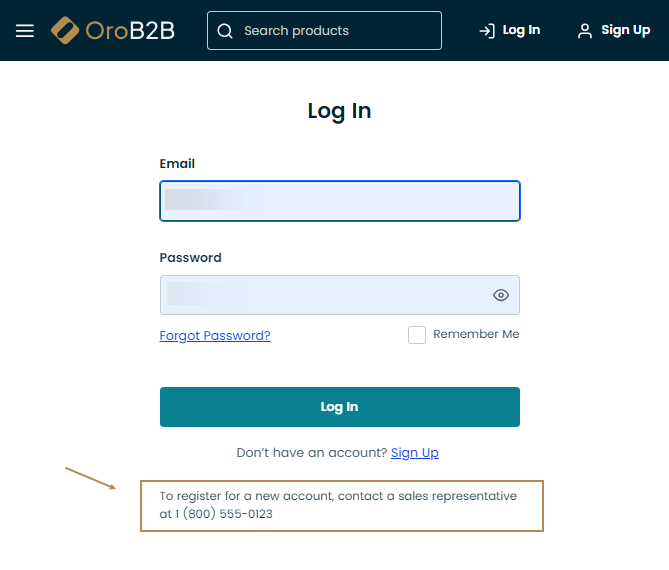 Show Registration Link — Shows/hides the registration link from the storefront login screen. The link is next to the Sign In link in the top bar.