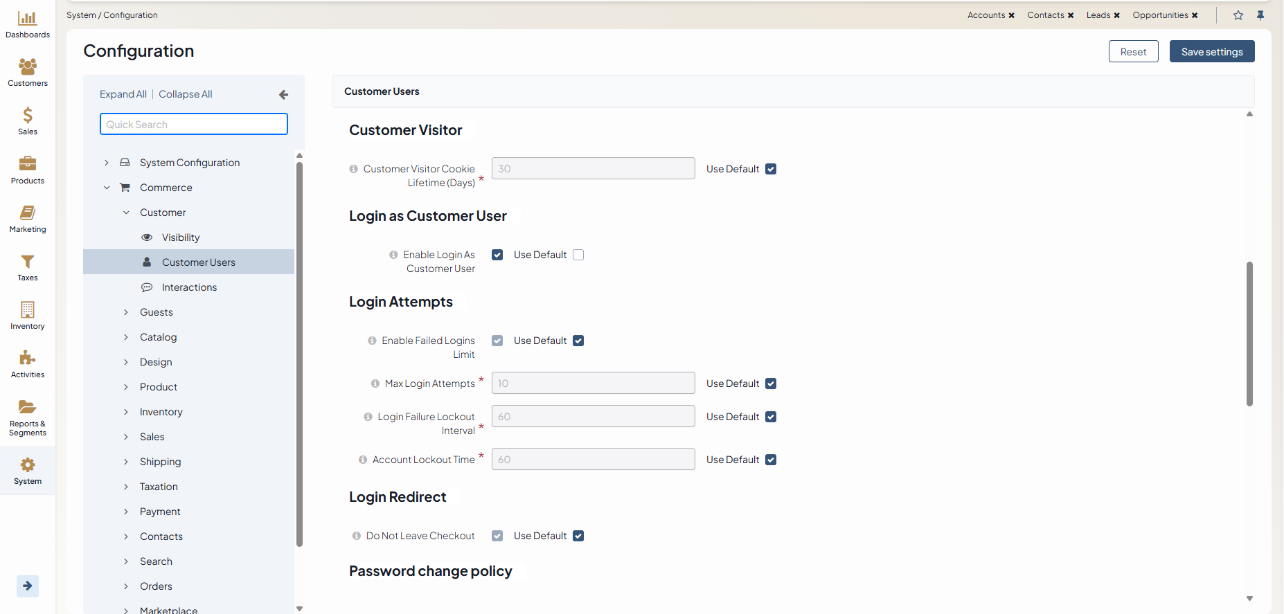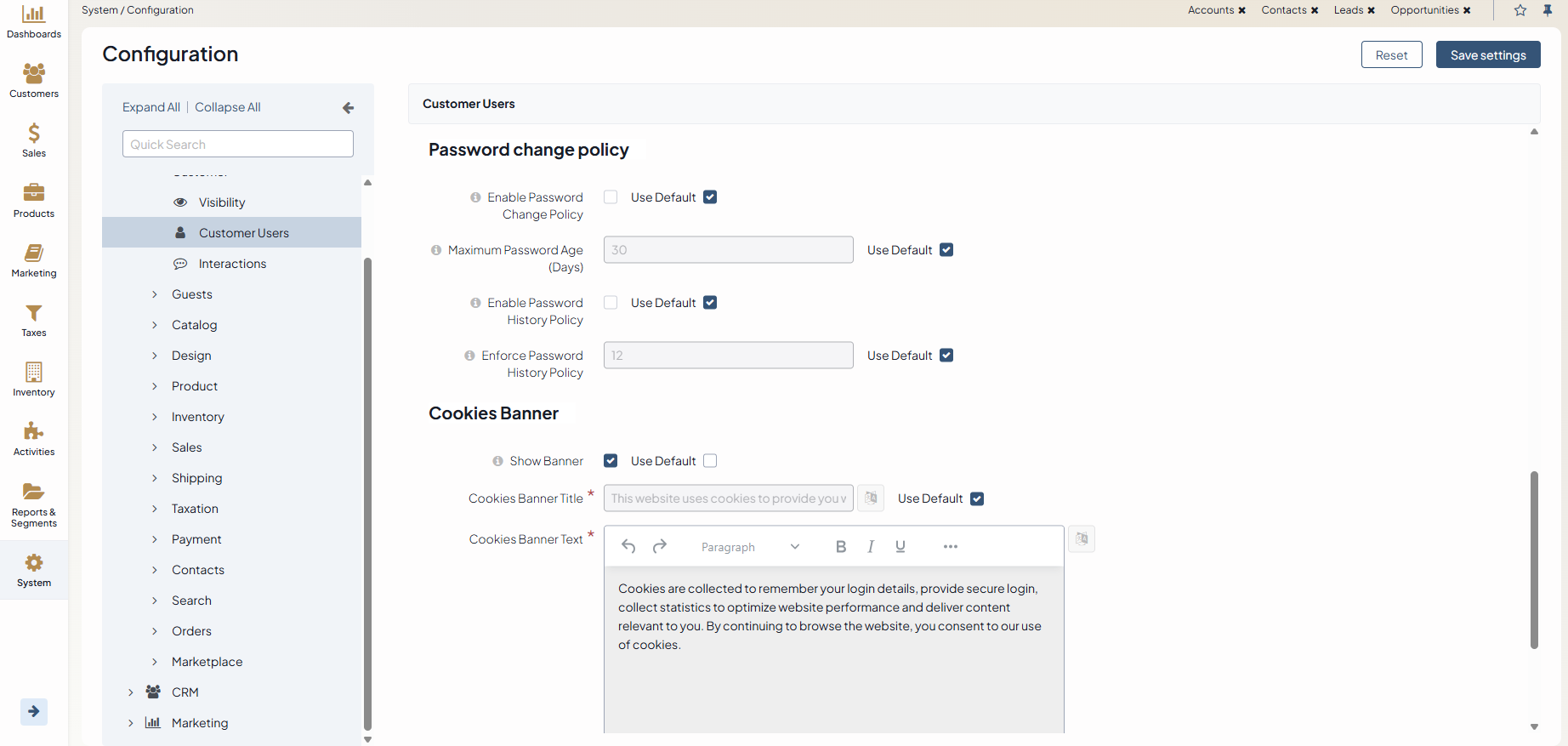 Customer User settings can be configured globally, per organization, and per website.