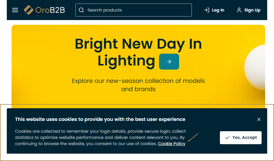 If the application was installed without demo data, the banner is disabled. Configure the following options to enable cookie consent banner on the global level: