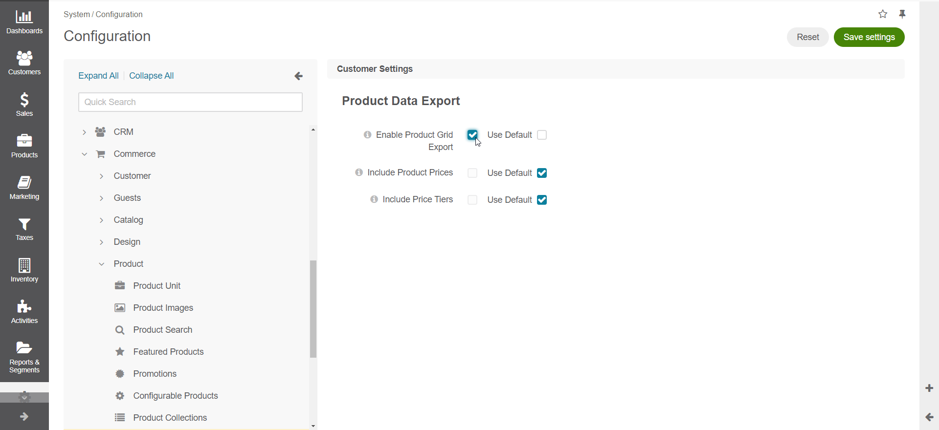 Configure Global Customer Settings for Product Data Export
