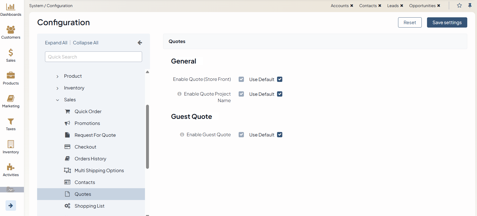 Configure Global Settings for Quotes