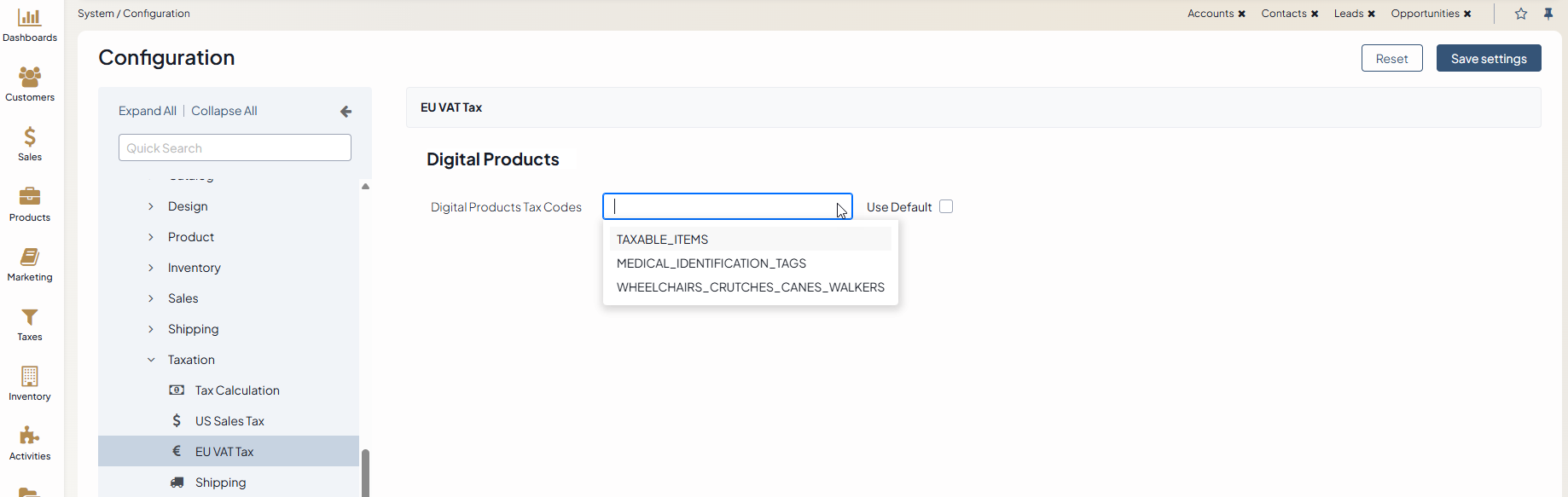 Configure Global Settings for EU VAT Tax (Digital Products)