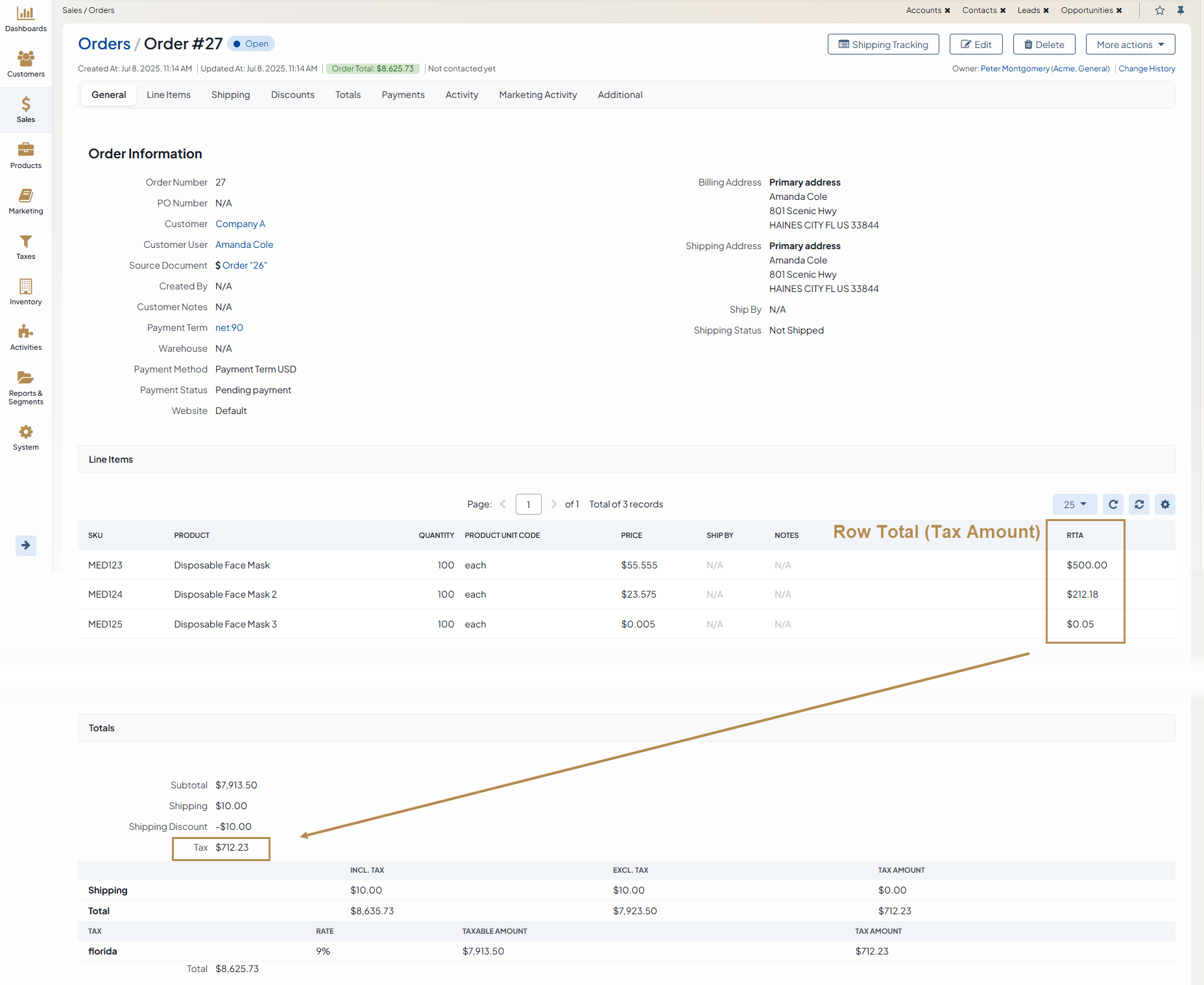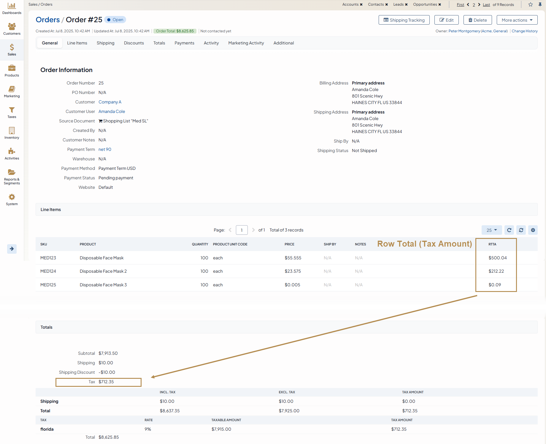 Keep in mind that in the back-office, tax amounts are always rounded to 2 decimal places, regardless of the tax calculation formula or price precision settings. This approach ensures compliance with regulations in many countries that require displaying taxes per unit. Additionally, since most jurisdictions mandate rounding for tax filings, small discrepancies may arise between the tax collected and the amount reported.
