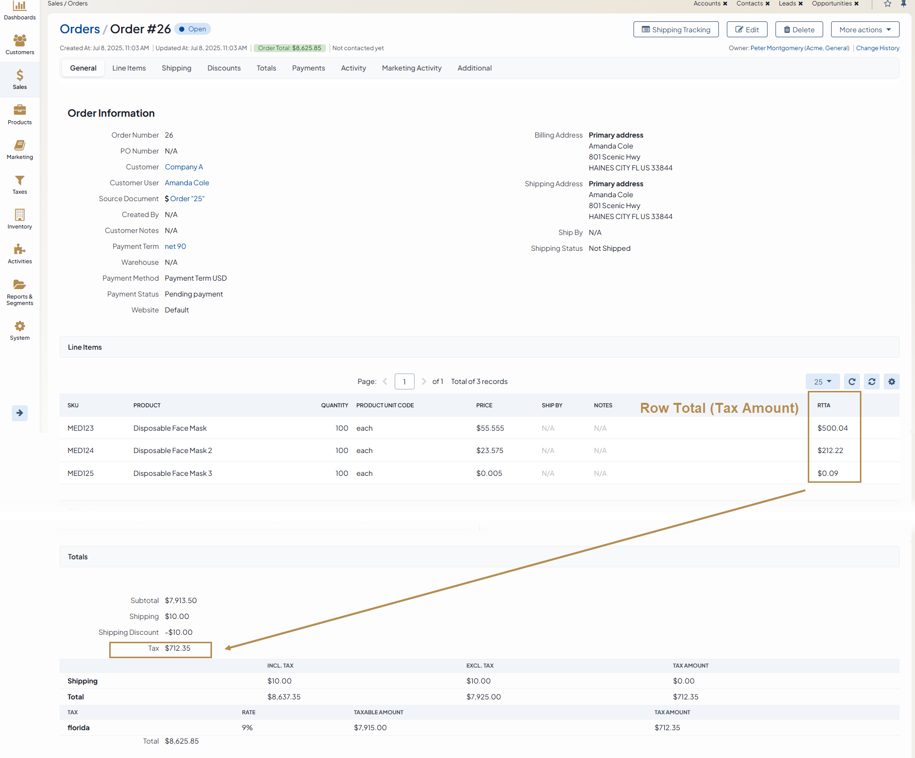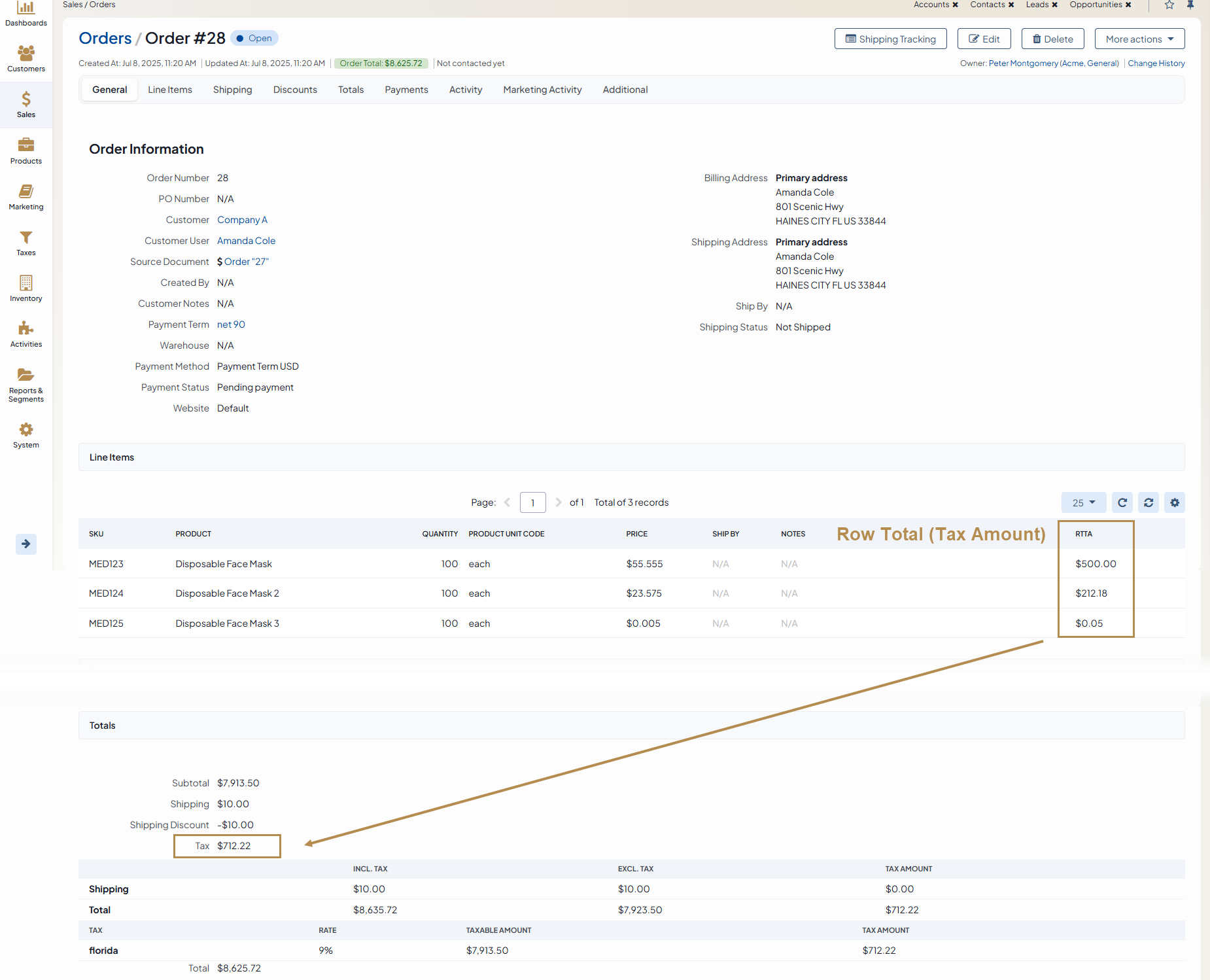 Line Item Tax = (Line Item Subtotal - Line Item Discount) x Tax Rate