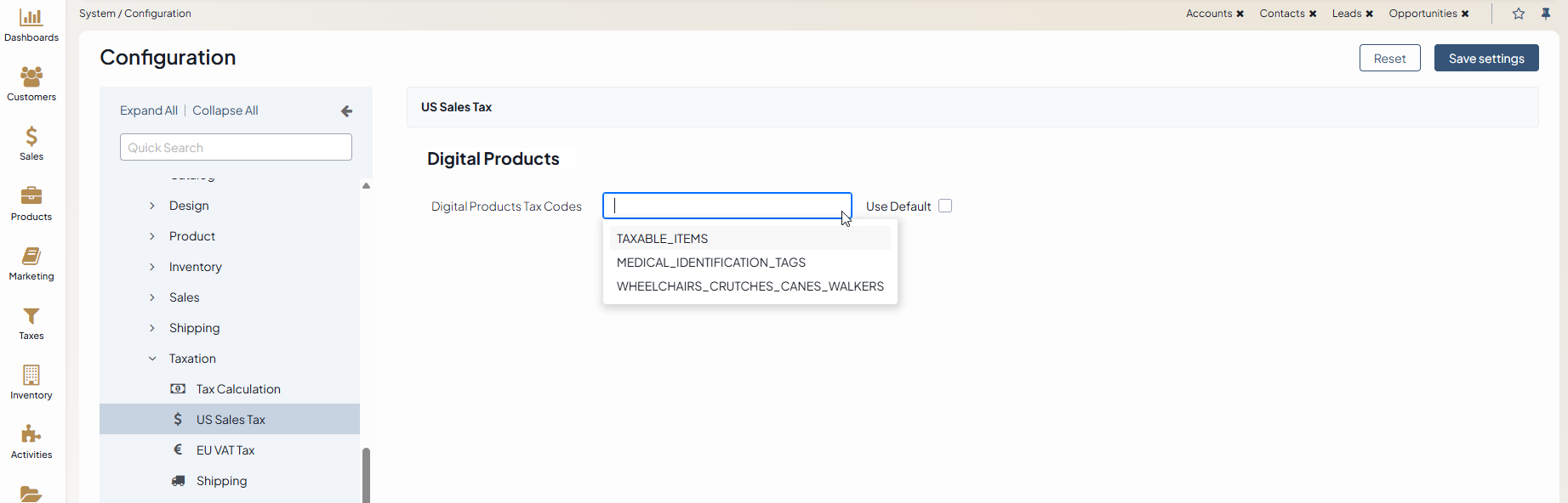 To ensure that the US sales tax for digital products is correctly calculated and included in your purchase quotes and orders when you sell to the US customers or from the US warehouse, label the necessary digital product tax codes in OroCommerce as taxable in the US.