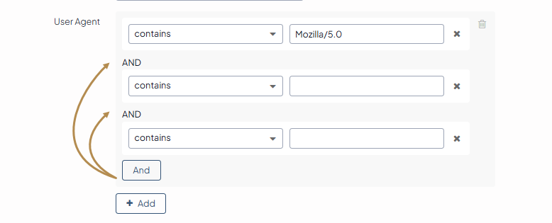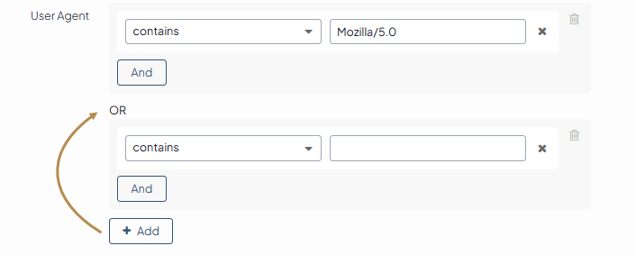 Click +Add next to the User Agent field.