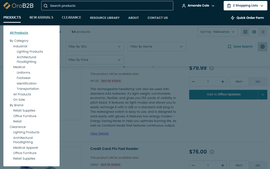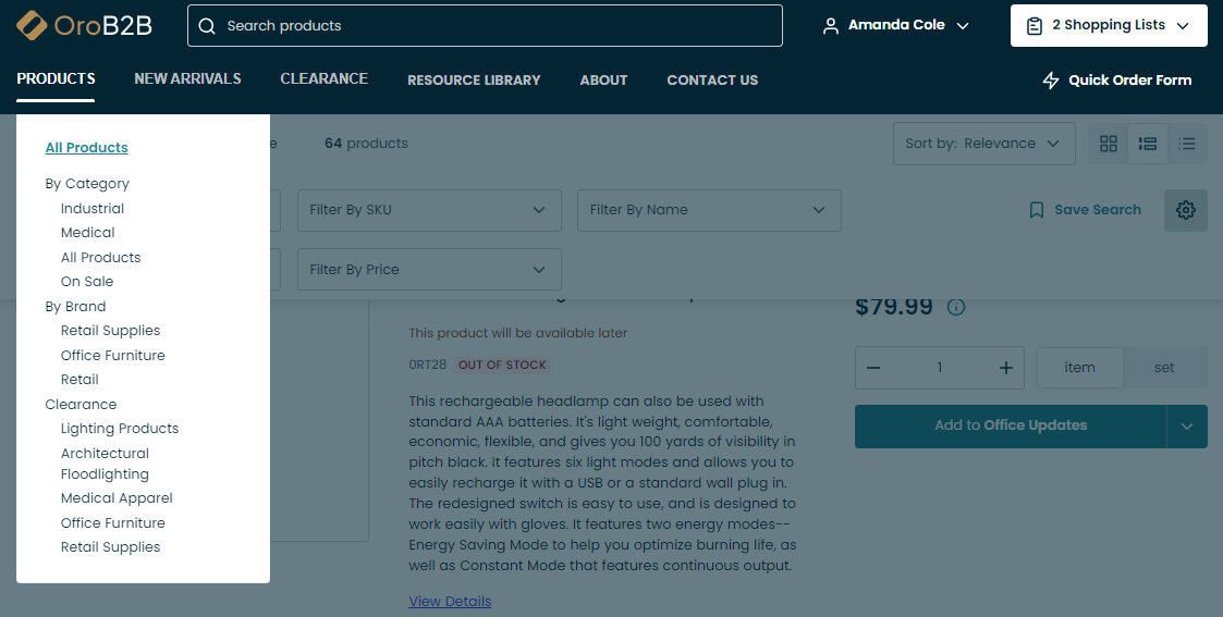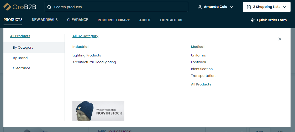 Select one of the standard pre-designed pages of the OroCommerce storefront.