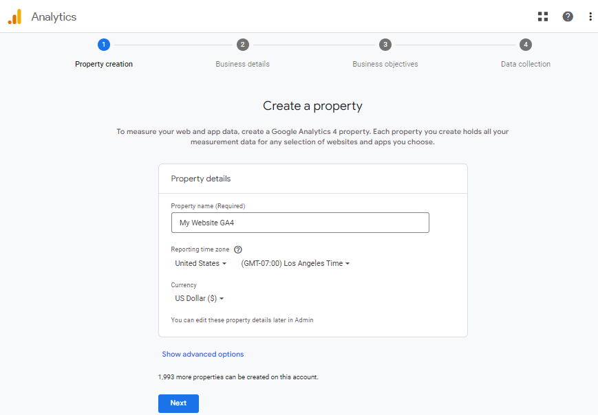 Create a Google Analytics 4 Property