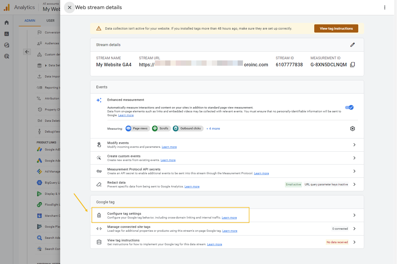 Once a data stream is set, configure tag settings for your web pages via Google Tag Manager.