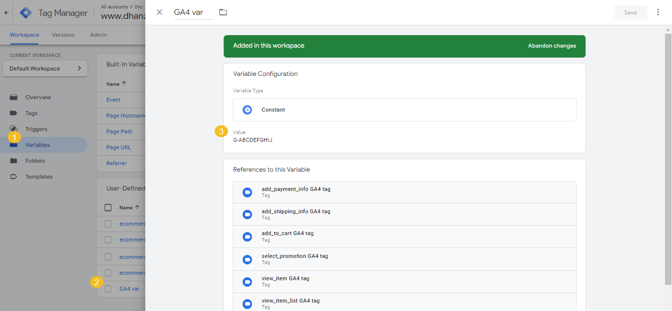 Please, be aware that you must have Google Tag Manager and Google Analytics 4 accounts already created to proceed with the integration between your Oro application and Google Tag Manager and pass data to Google Analytics 4.