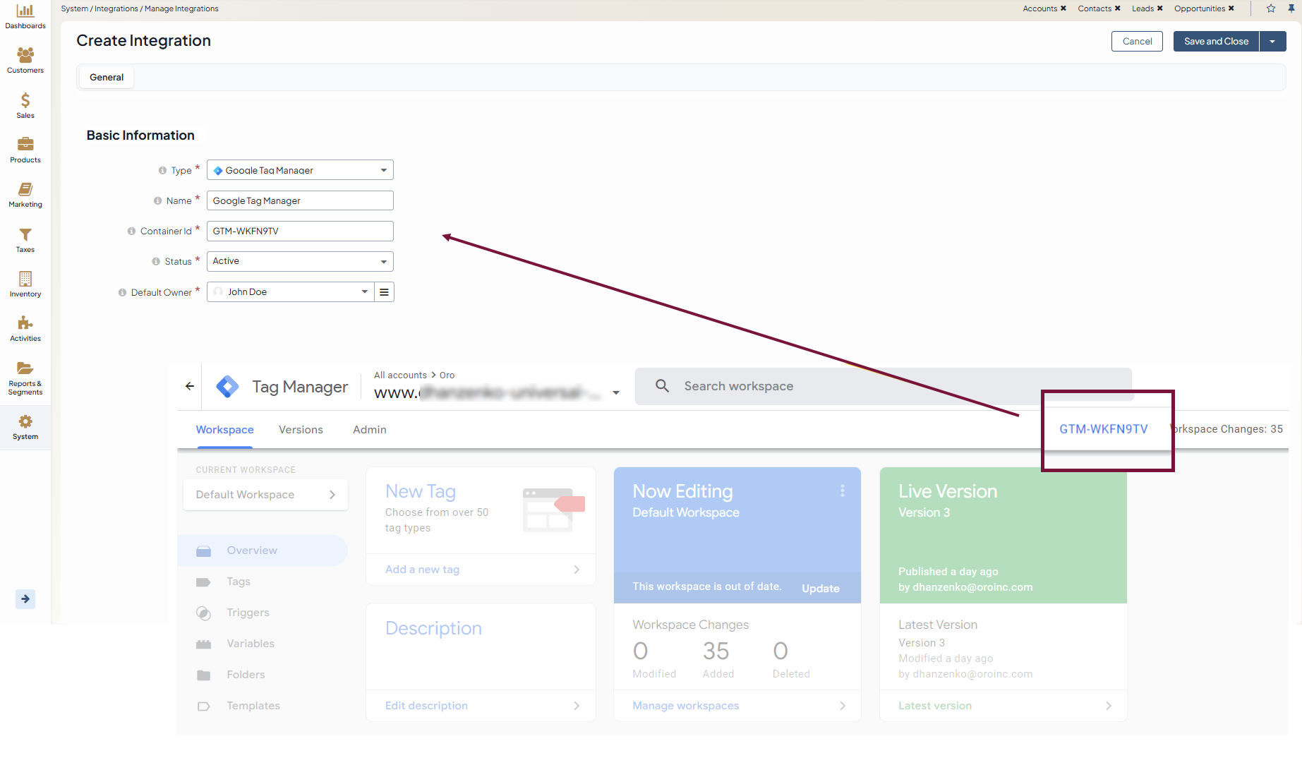 To configure a Google Tag Manager integration: