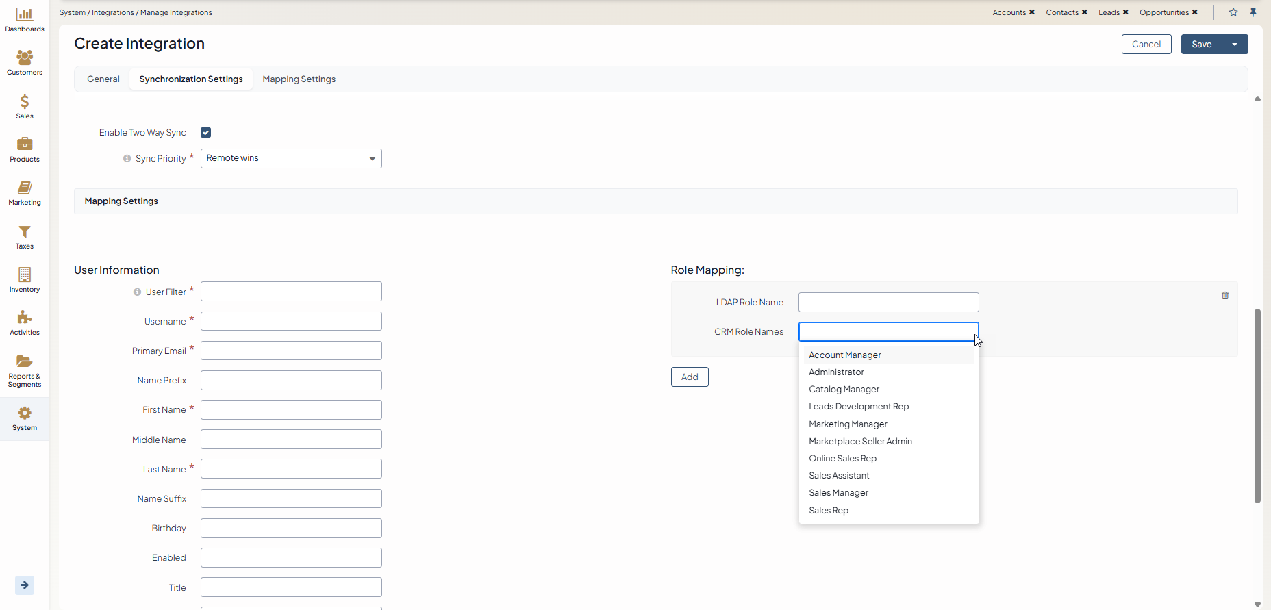 In the Mapping Settings section, define how the user attributes and role names of the Oro application and the target LDAP server will be mapped to each other.
