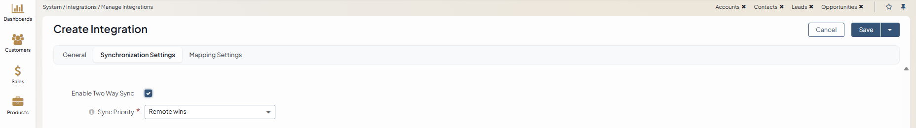 In the Synchronization Settings section, enable/disable two-way synchronization.