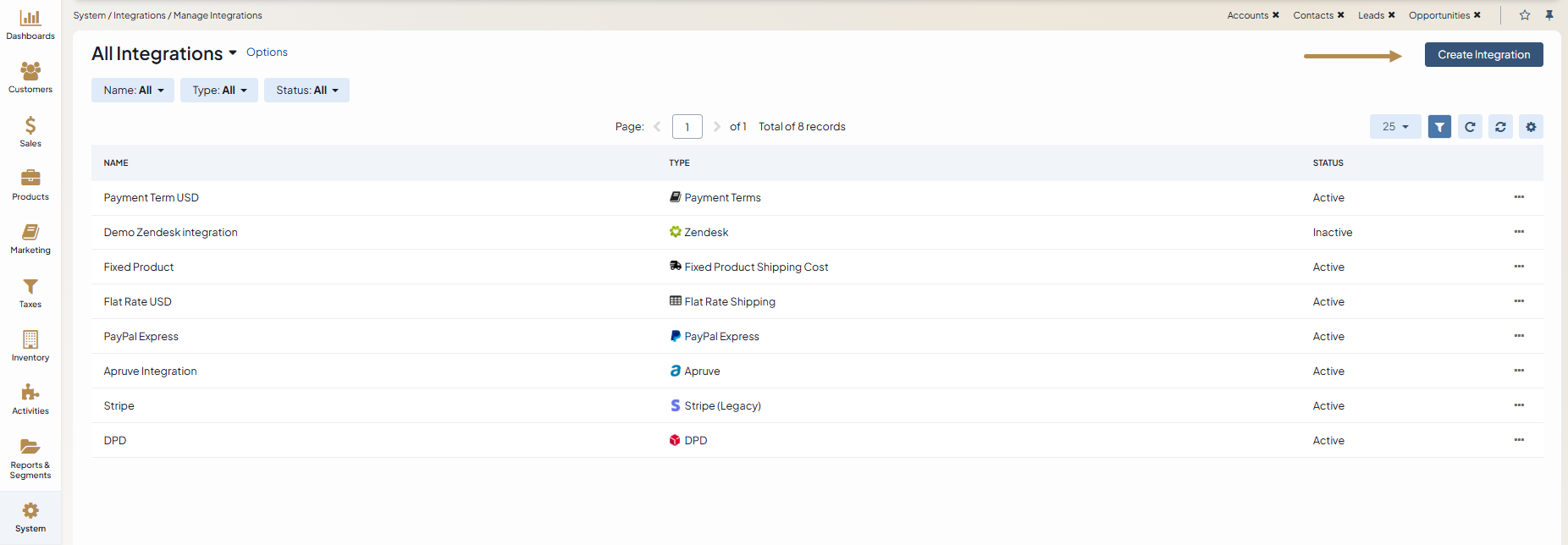 Log into your Oro application and navigate to System > Integrations > Manage Integrations.