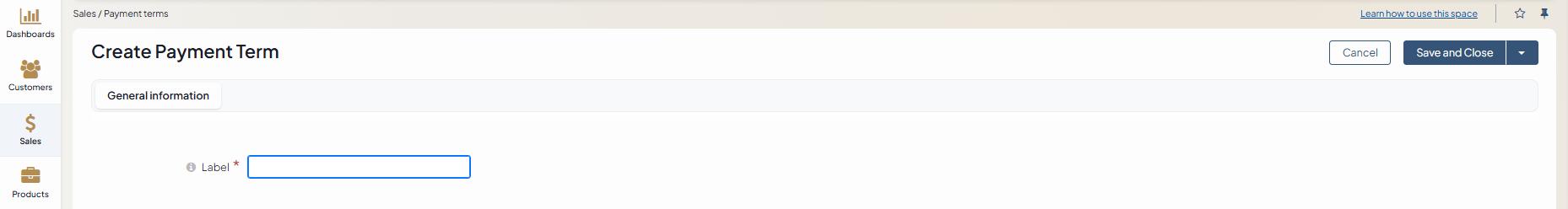 To create a new payment term: