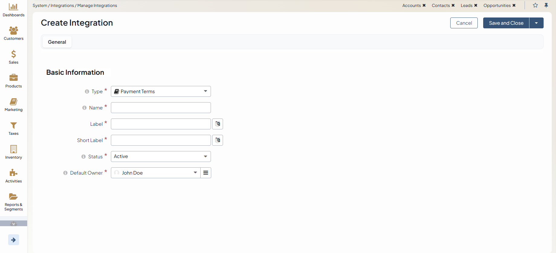 Status — Set the status to Active to enable the integration.
