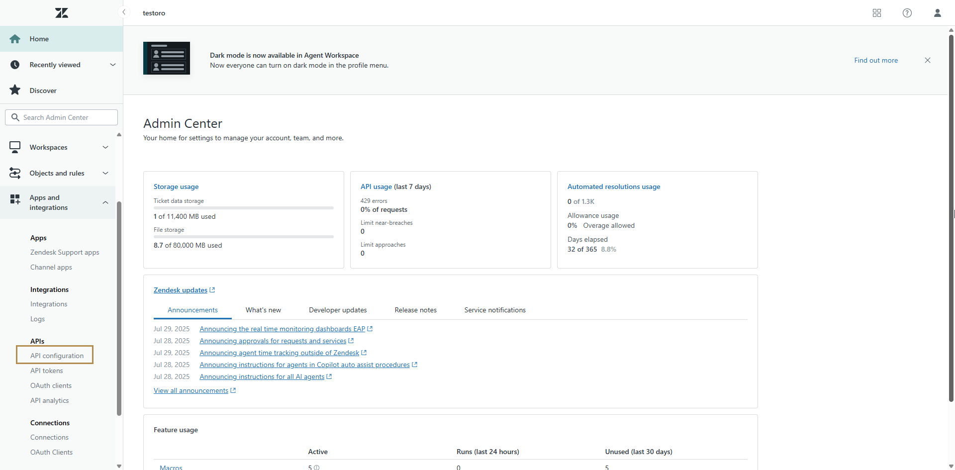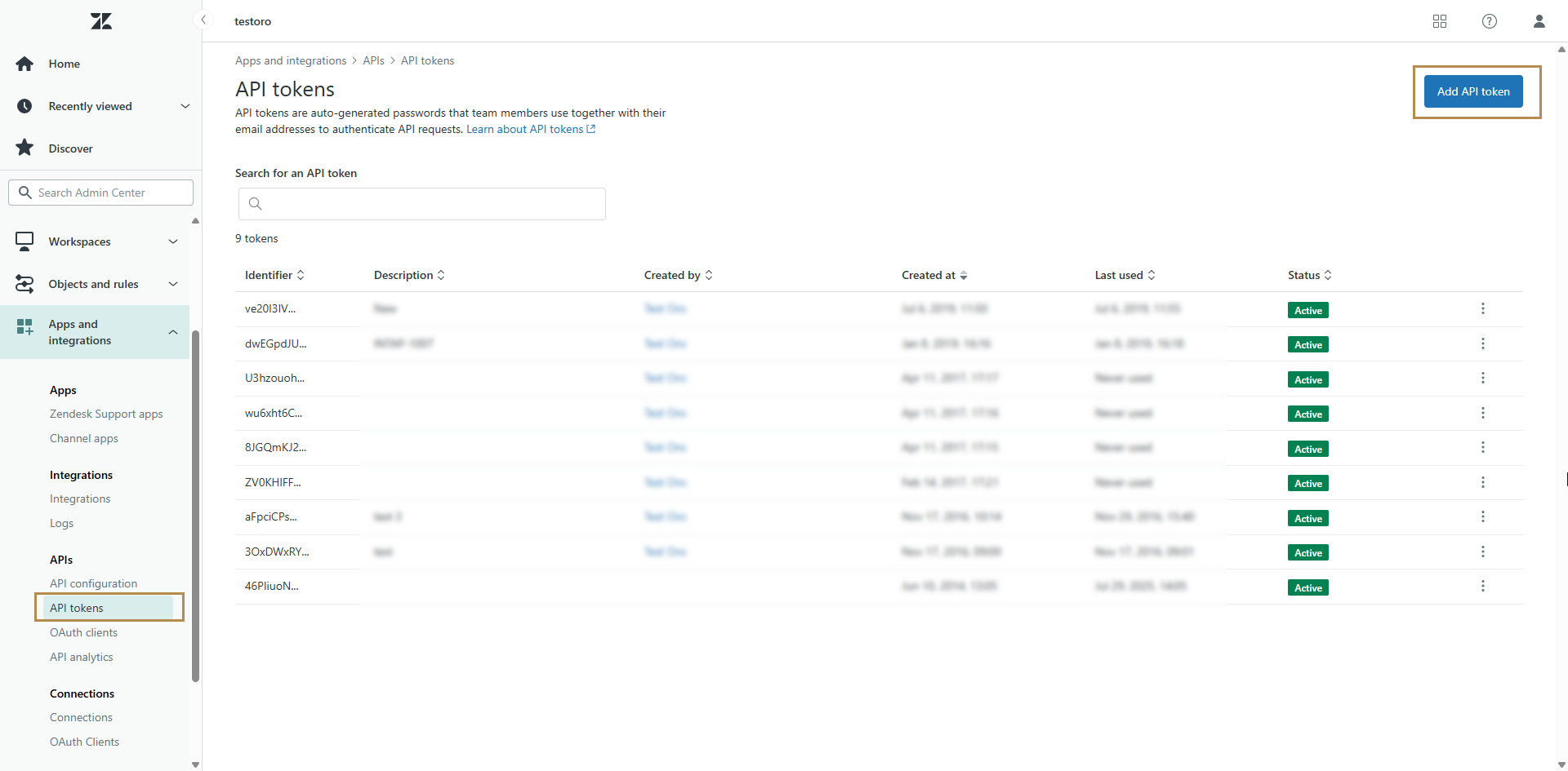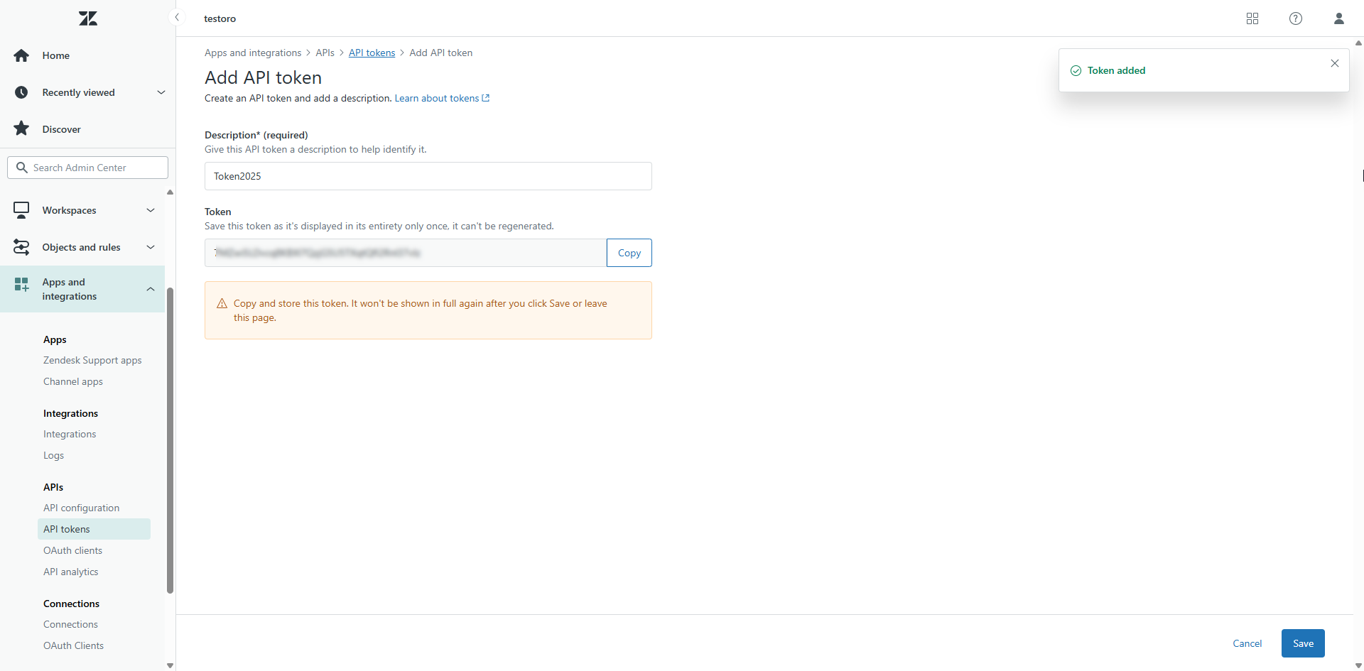 Generate API token in Zendesk