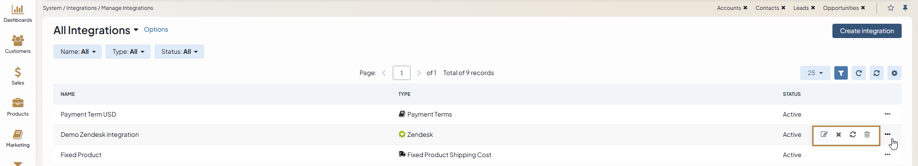 Click Create Integration on the top right.