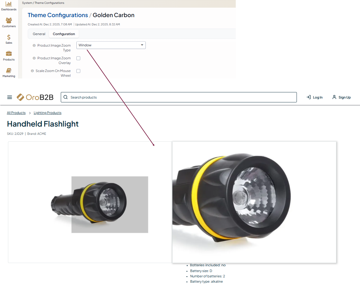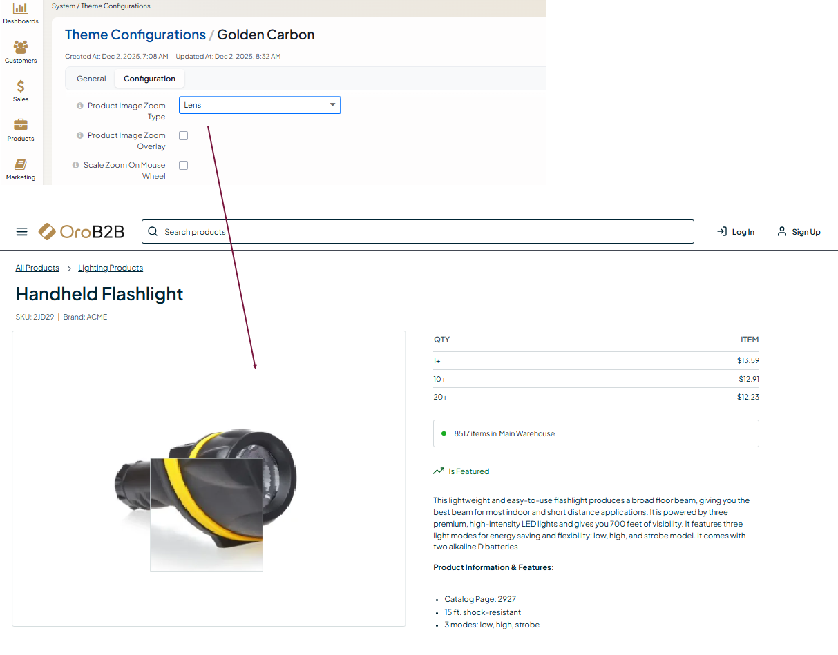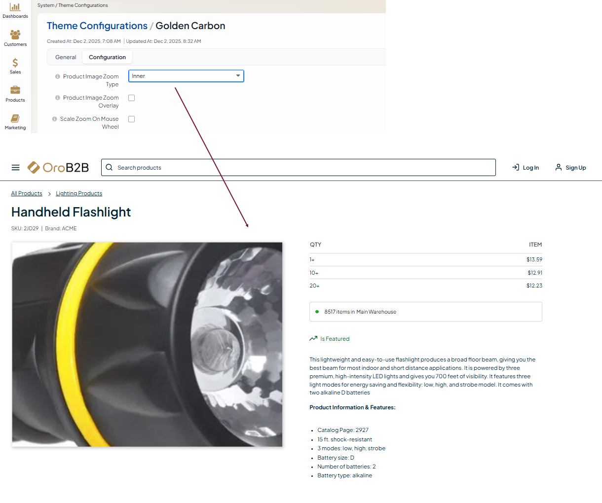 Product Image Zoom Type — Select the zoom effect for product images on the product details page. Available options: