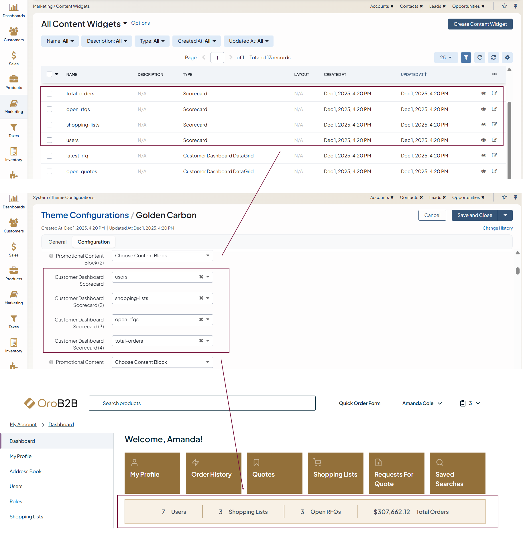 The Scorecard content widget is available as of OroCommerce version 6.1.2.