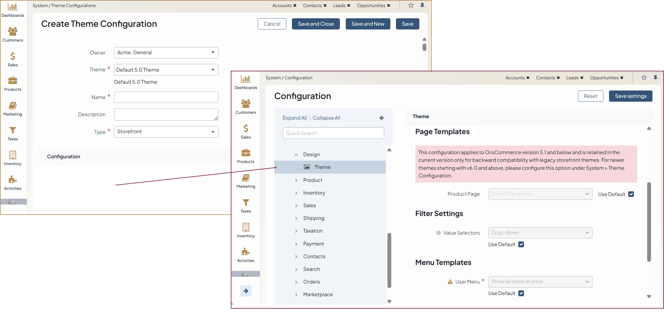 To customize the storefront theme for 5.1 and earlier versions of OroCommerce, please refer to the theme system configuration settings.
