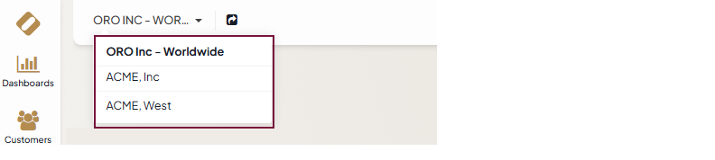If you have access to more than one organization, you can switch between them using the selector on the top left.
