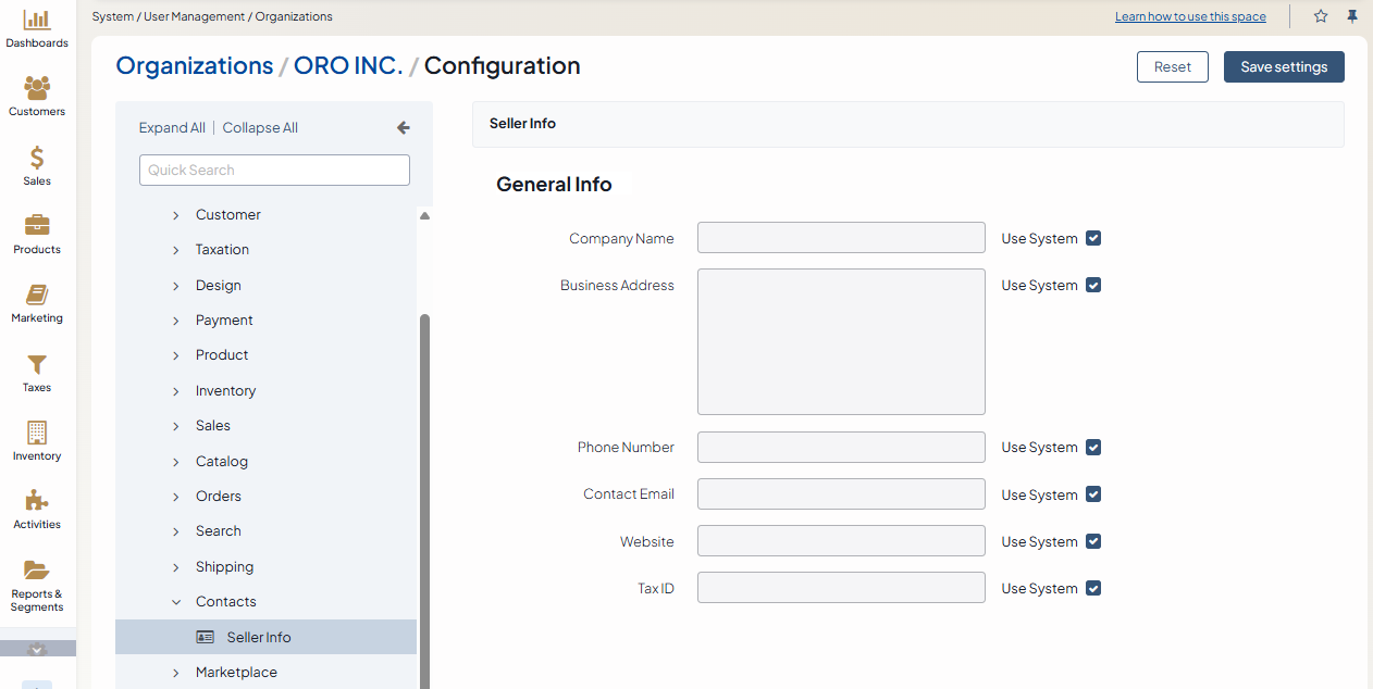 Configure Seller Info Settings per Organization