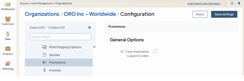 Configure Promotions Settings per Organization