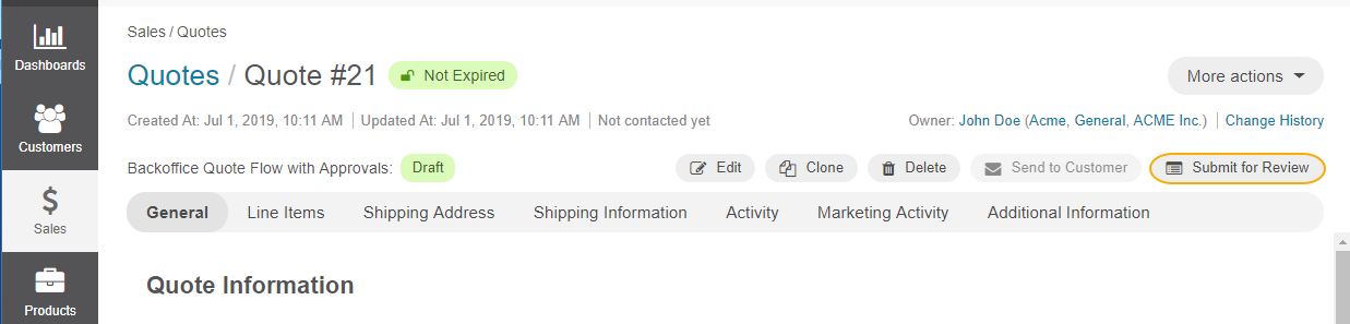 Review And Approve Quotes — Enables a user to manage quotes (e.g., sent to customer) without approval. When disabled, the user has to submit quotes for review first. This capability affects quotes when Backoffice Quotes Flow with Approvals is enabled in the application.