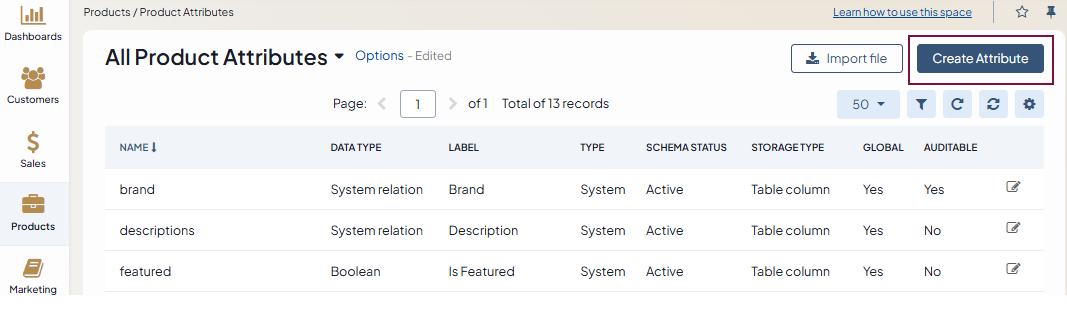 [Product Attribute] Create Attribute — Enables a user to create product attributes in the application.