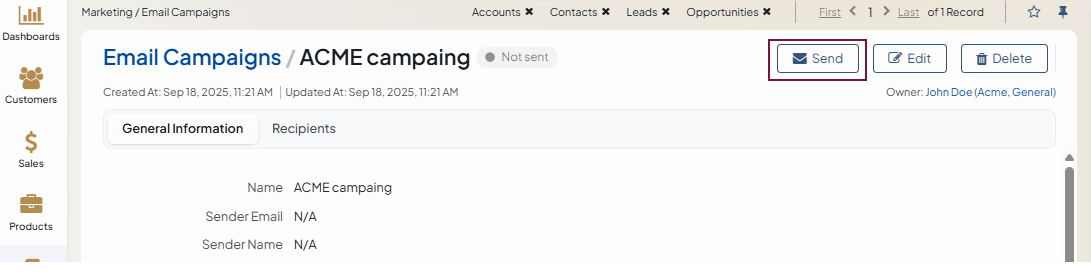 Send Campaign Emails — Enables a user to launch a campaign manually. When the capability is enabled, the user can send emails specified by the campaign which is not scheduled to send emails at a specific time (campaigns that have Manual selected for Schedule). This capability does not affect the user’s ability to define and edit campaign settings and create templates.