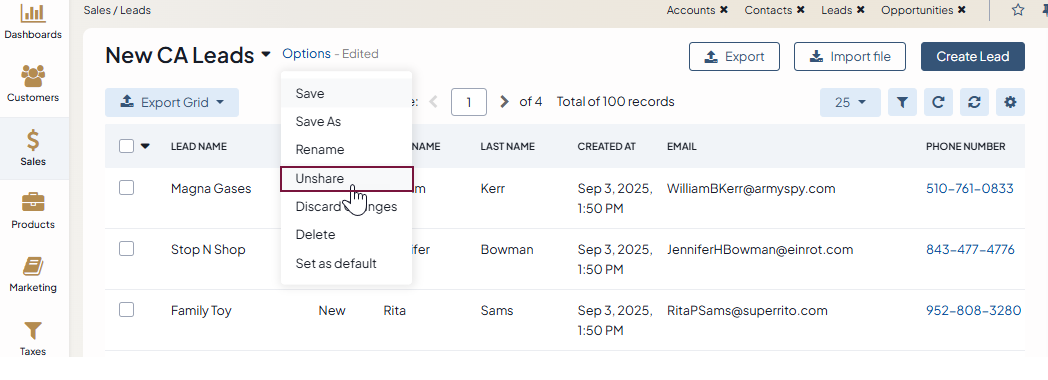 Share Data View — Enables a user to share and unshare the grid views that they have configured.