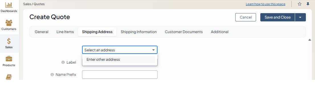 Enter The Shipping Address Manually — Enables a user to provide the shipping address for quotes manually when creating or editing a quote in the back-office.