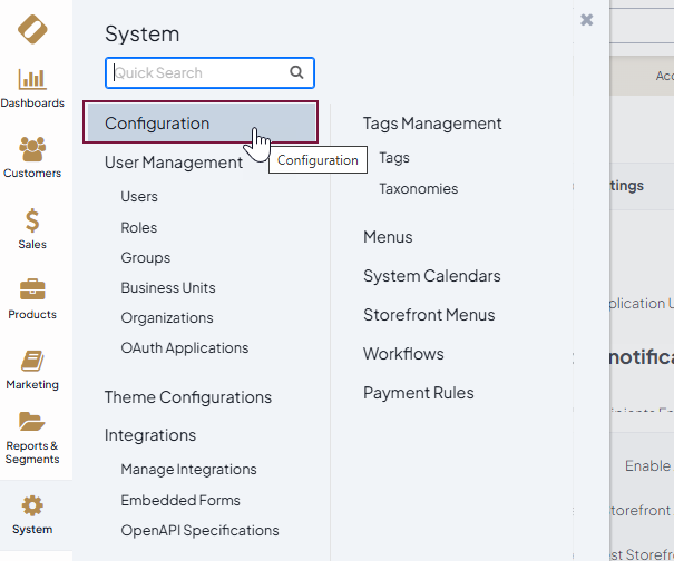 Access System Configuration — Enables a user to access system configuration settings under System > Configuration in the main menu.