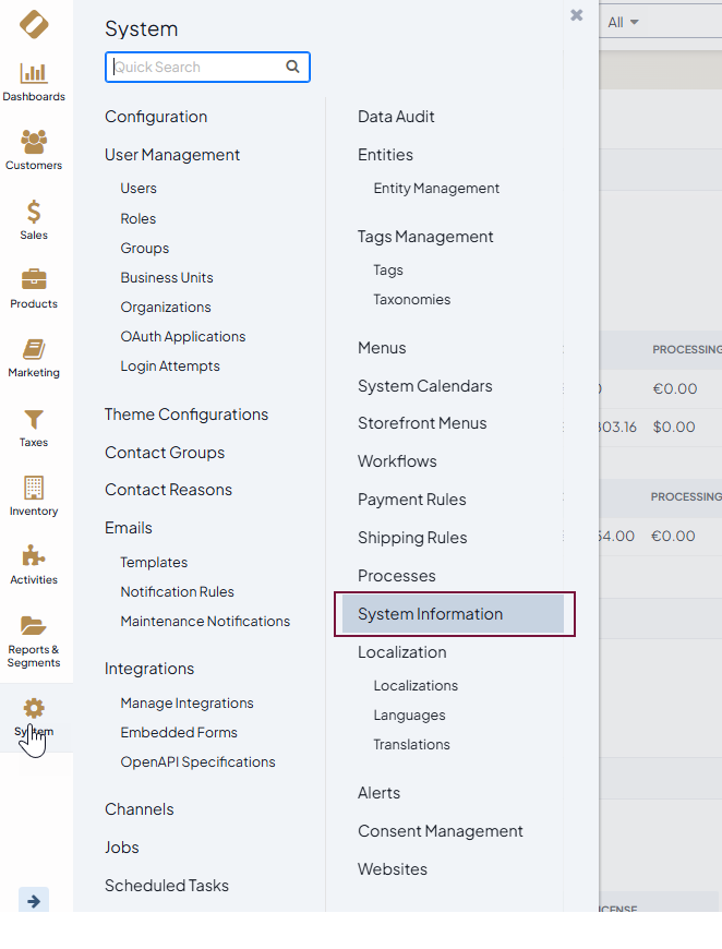Access System Information — Enables a user to view the system information page under System > System Information in the main menu. This page contains the list of Oro packages and third-party packages that are installed, and is usually only used by system administrators and integrators.