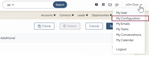 Access Personal Configuration — Enables a user to access their profile configuration settings where they can localize the application, change the display settings, and otherwise modify how the application will appear to them. Changes made by a user on the personal configuration page do not affect other users.