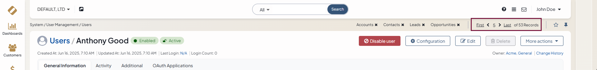 Record Pagination — Enables the user navigation to the previous or next grid record from a record view page.
