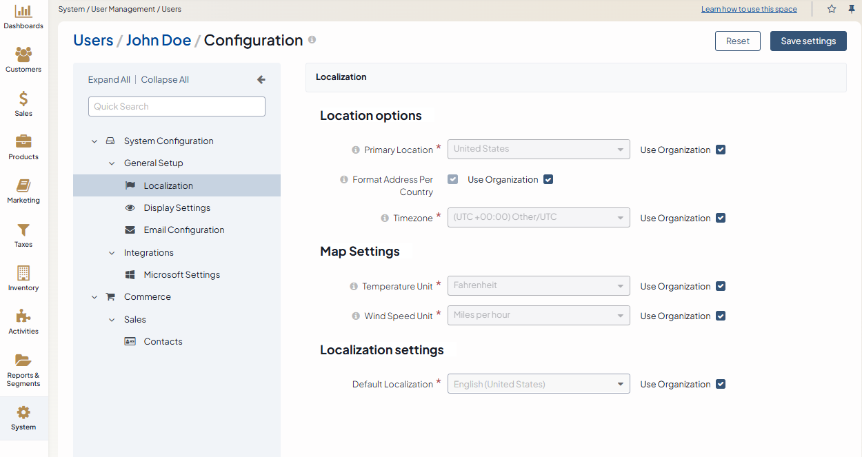Select System Configuration > General Setup > Localization in the menu to the left.