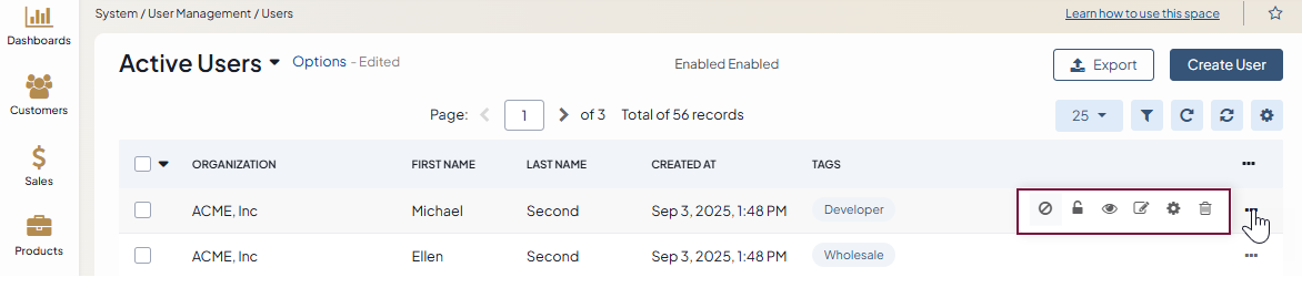Once the user is created, it becomes available in the table of all users under System > User Management > Users: