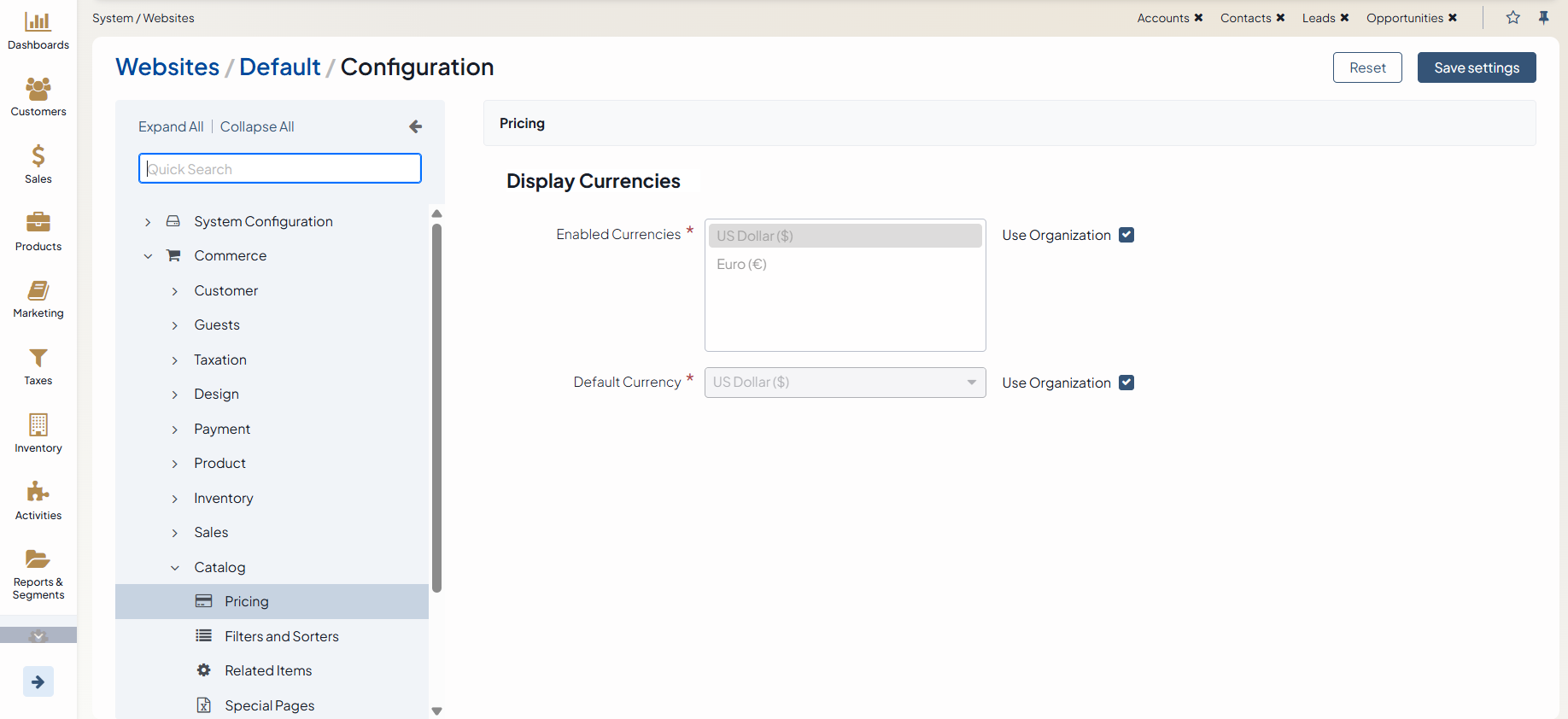 Configure Pricing Settings (Currencies) per Website