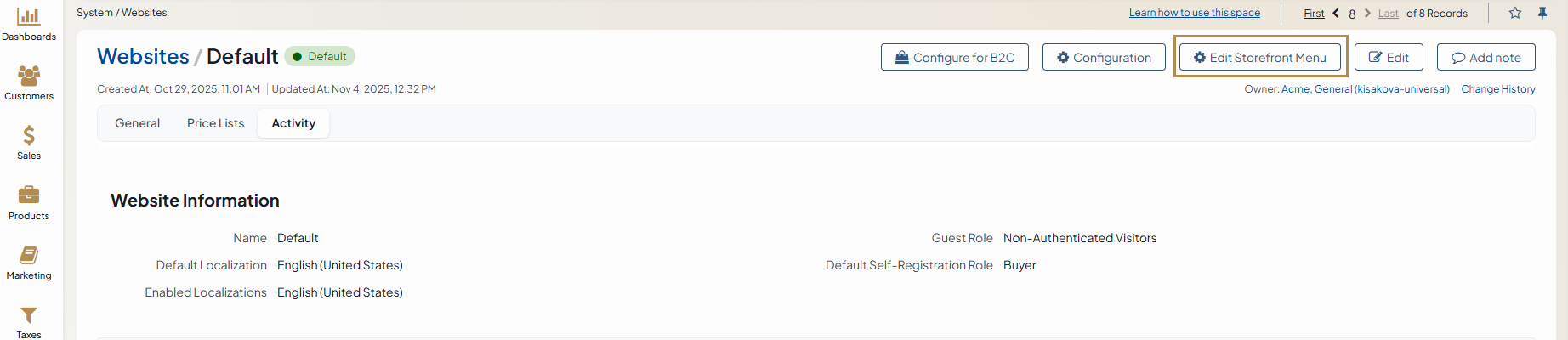 1. Navigate to System > Websites in the main menu.