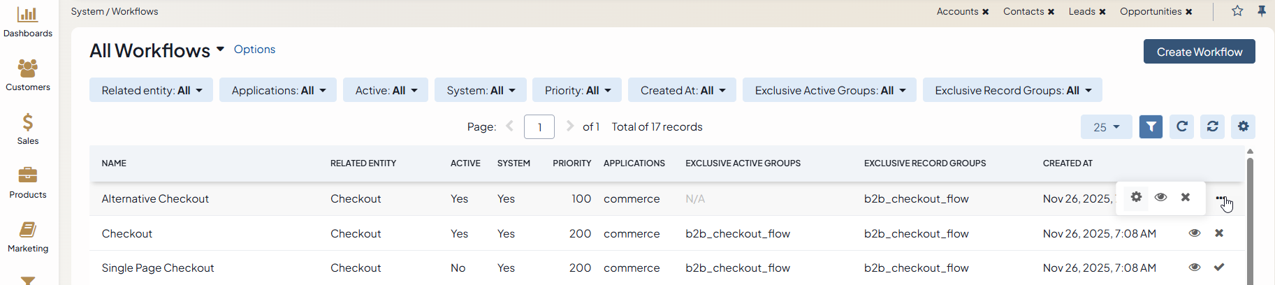 Navigate to System > Workflows in the main menu to reach the page with all system workflows.